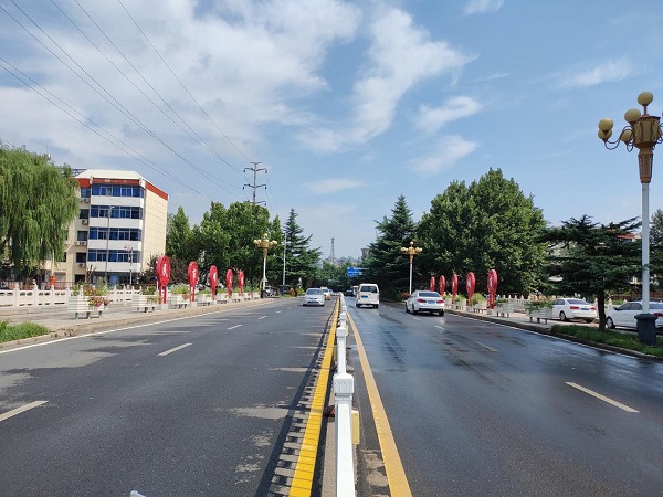 鹿泉街巷提升项目施工包含大大小小的街巷共141条,覆盖整个鹿泉区,改造主要以提升沿线建筑风貌、全线景观和道路交通环境为主。目前施工完成的海山大街为鹿泉区主干道,为项目改造施工体量最大的路段,施工涵盖了人行道、车行道、绿化、交通设施等内容,全长3600余米。(二分公司